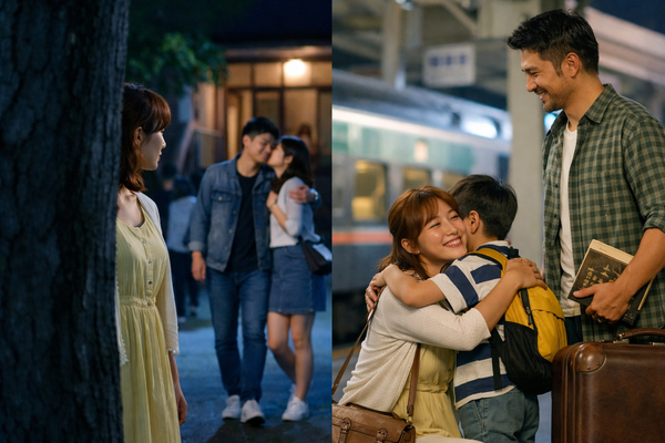 ▲ The train arrives at the station. Wagang waves goodbye to Muya and her son.