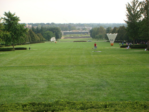 我喜歡逛博物館, 舊貨店, 欣賞這些老東西. 同學不太舒服已經坐下來, 姪女還太年輕不會欣賞這些, 於是我們大家出來曬太陽. 樓梯上坐著望著雕塑公園, 蠻適合老人家的. 看著大草坪理兩顆羽毛球掉落草地的雕塑, 蠻有夏意.