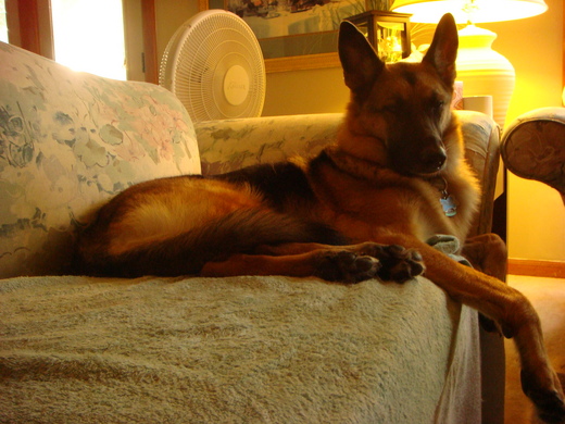 趁著周末, 早晨我們在家共度家庭生活. 同學的肋骨傷不太舒服, 請她吃藥多休息, 我坐在後院陽台, 欣賞同學先生除草, 與狗玩耍.....