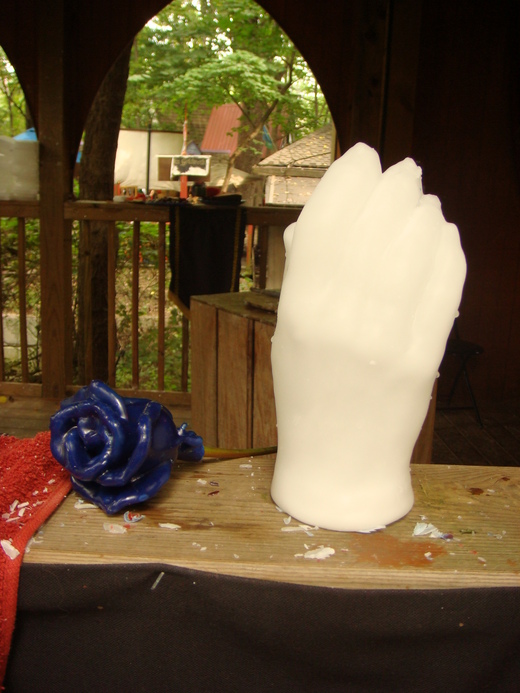 那個村子裡每個人都打扮成中世紀的人們, 村裡都是店家, 賣吃的, 玩的, 紀念品..... 還有一場中世紀的騎士比賽. 欣賞完比賽,姪女丟刀子遊戲,我作了一隻蠟手拿藍玫瑰作品。 我們又累了, 回家休息, 晚上去吃我們Kansas 三寶的最後一寶 -- Jazz night.
