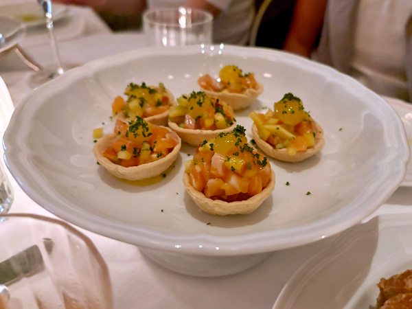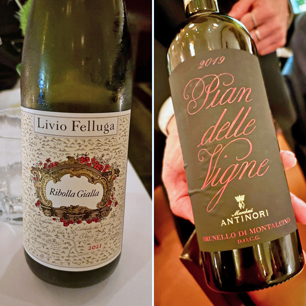 Wine Note: 在西歐不需點什麼高價酒,多能稱職佐餐。白酒選了東北義 2021 Livio Felluga Ribolla Gialla Colli Orientali del Friuli,清爽的 Ribolla 品種。酒單裡當然有許多 Antinori 產品,紅酒就選了熟悉、合理且易飲的 2021 Marchesi Antinori Pian delle Vigne Brunello di Montalcino DOCG,年輕可是依然不錯