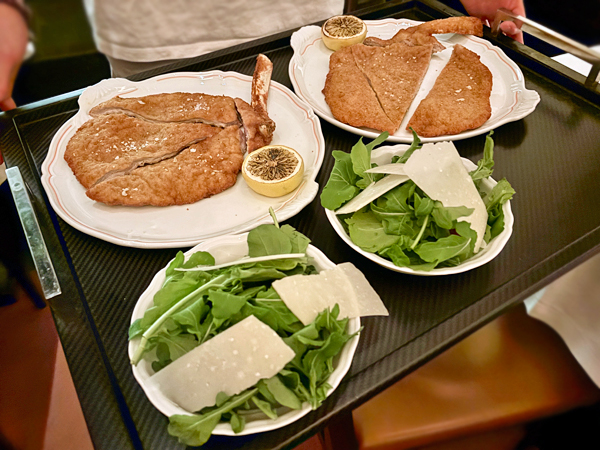 來到米蘭,當然要點帶骨的 Cotoletta alla Milanese 炸小牛排,這兩份足夠四、五人吃了