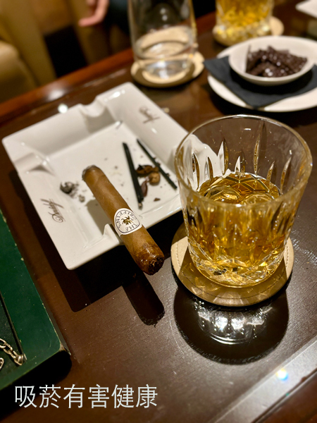選了一支 Davidoff 旗下味道較淡的 The Griffins、配一杯威士忌,天南地北閒聊