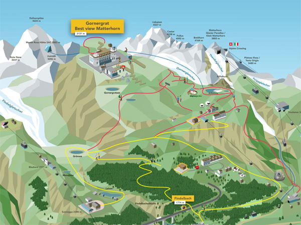 賞景午餐後散步回旅館與朋友們會合,一起前往搭乘 Gornergrat Railway 登山,天氣放晴後的小鎮益發漂亮