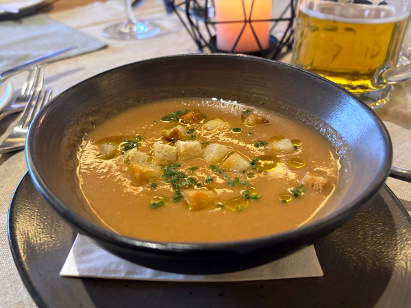 初嚐溫熱版的 Gazpacho 冷湯,蕃茄味更強、基本上可稱 Tomato soup 了