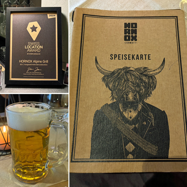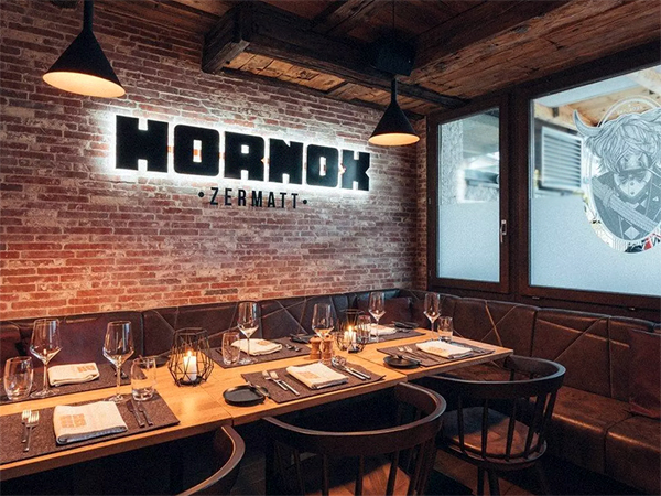 位於 Alpen Resort & Spa 旅館樓下的《HORNOX Zermatt》是當地著名的燒烤餐廳,也稱為 HORNOX Alpine Grill,同樣木質裝潢,環境遠勝前一晚的《Osteria Bella Italia》