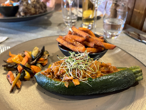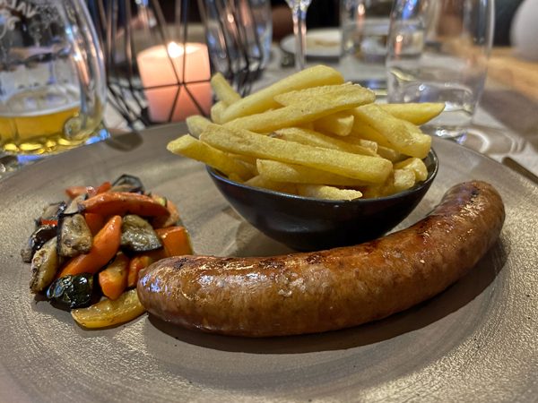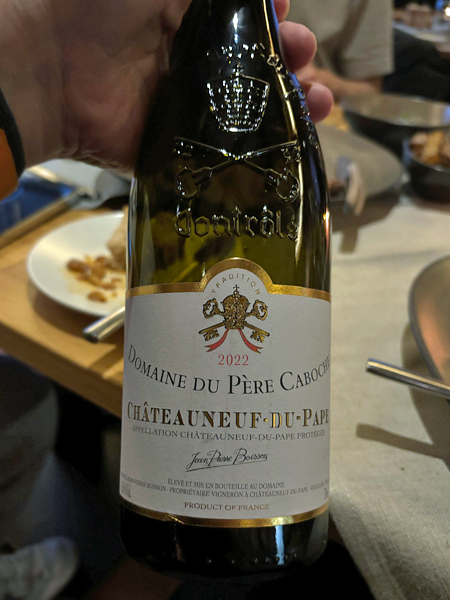 很少機會品嚐瑞士葡萄酒,便依建議來一瓶 Domaine du Mont d’Or La Perle du Valais, Fendant du Valais AOC 白酒,初嚐 Fendant(或Chasselas)葡萄品種,果味豐郁、搭重口味菜餚也沒問題。紅酒則選了法國隆河 2022 Boisson Domaine du Pere Caboche Chateauneuf-du-Pape,厚重、年輕些但能配肉類