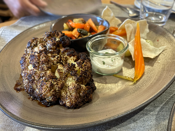 雖是燒烤餐廳,但強調葷素皆烤、還特別說歡迎素食者,女士、女孩們正好多點些素食,烤茄子、花椰菜、鷹嘴豆泥(Hummus)全來