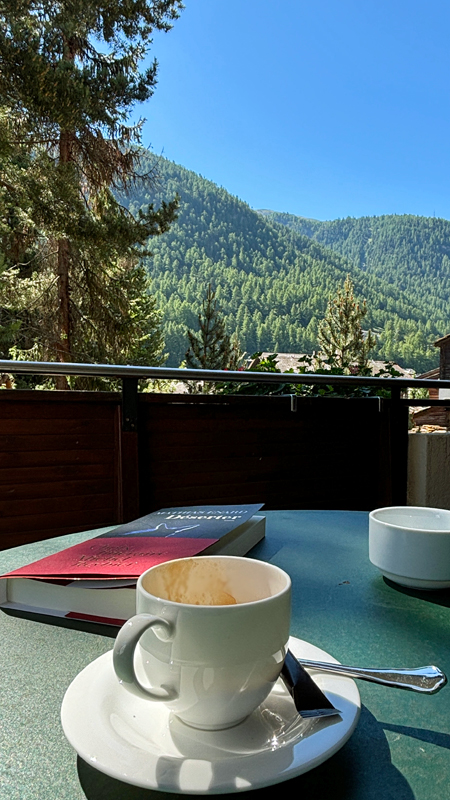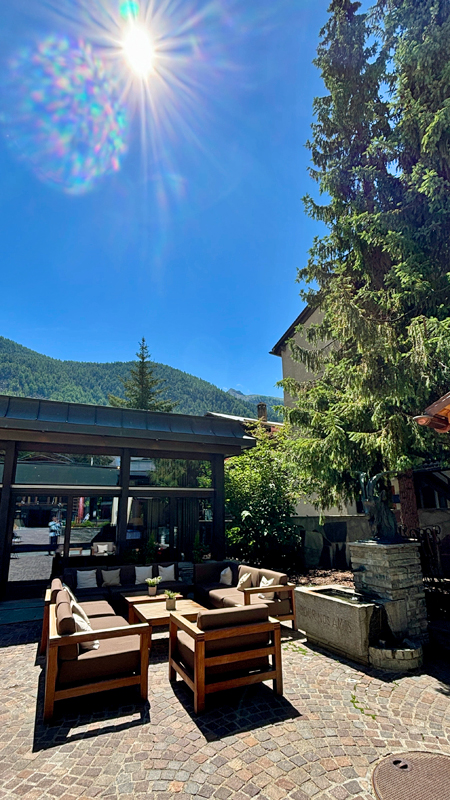 豔陽高照、氣溫卻怡人,滑雪勝地的盛夏同樣迷人,在室外咖啡座等待集合時又享受了一杯拿鐵