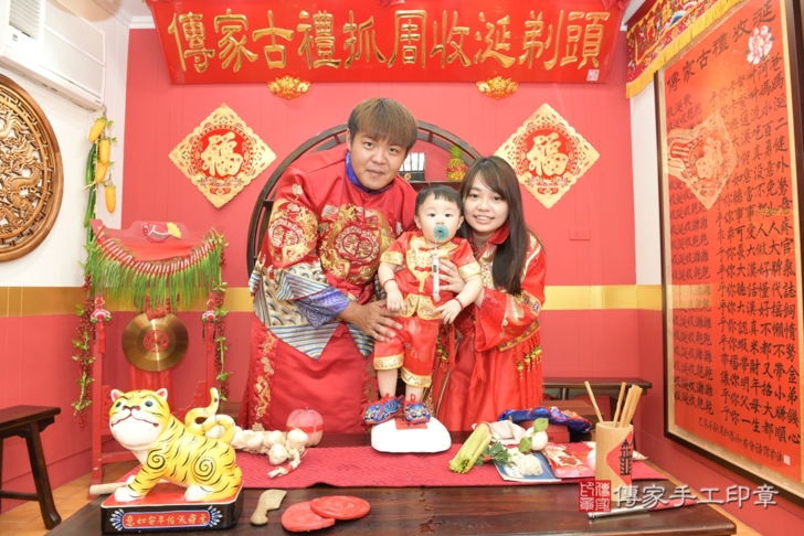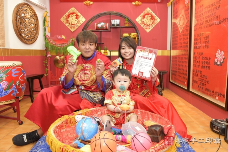 桃園市八德區蔡寶寶抓周推薦:嬰兒來店抓周度脺,專業嬰兒古禮抓周流程儀式吉祥話、抓周道具物品24種、攝影拍照。爸媽寶貝三人穿古裝禮服「日式、中式、韓式。款式200套」抓周證書,DVD光碟。2021.08.08