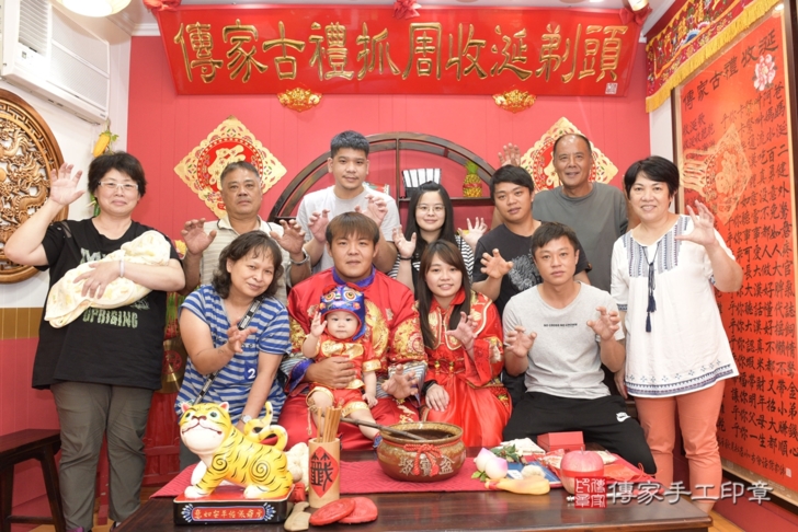 最愛寶貝的家人們都來到傳家高雄店古禮的抓周會場
