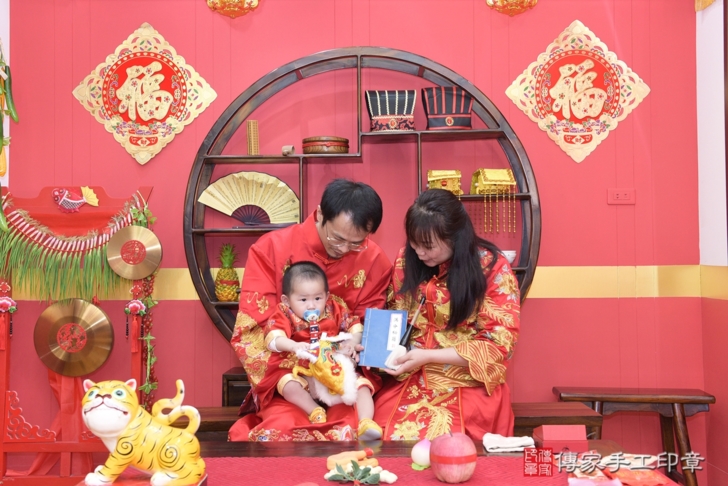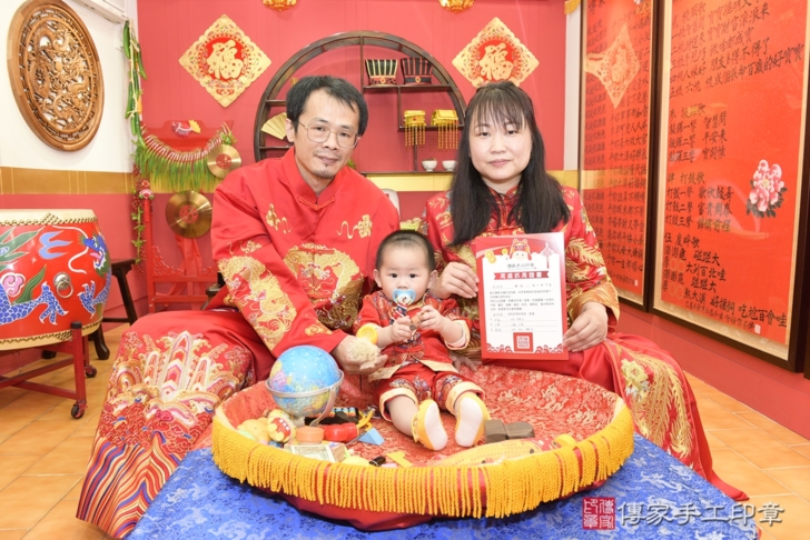 桃園市八德區張寶寶抓周推薦:嬰兒來店抓周度脺,專業嬰兒古禮抓周流程儀式吉祥話、抓周道具物品24種、攝影拍照。爸媽寶貝三人穿古裝禮服「日式、中式、韓式。款式200套」抓周證書,DVD光碟。2022.04.18