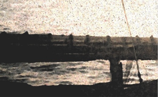 △ 甲板上映著昏弱水銀燈光的散去水流。