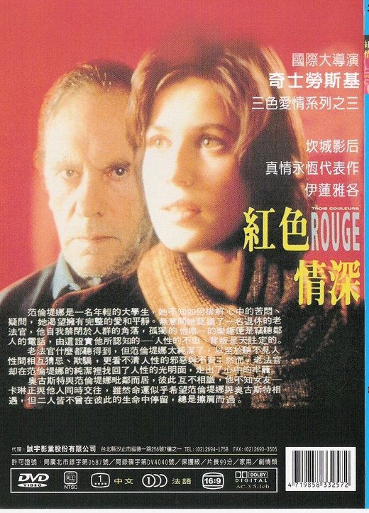 當時老師也沒有介紹導演。而剛看過許多名片,只能感想到表達世界的無遠弗屆,一睽違竟就是十年,而去年順著十誡、三情看著下來,雖然皆是印象深刻,不過對於他探討的角度,及他思想的內容,《紅色》算是更是深刻的。