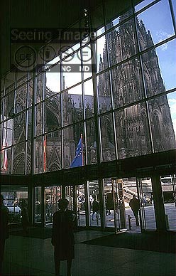 還未走出科隆車站,就先被落地窗前的一堵大黑牆所震懾,赫赫有名的「科隆大教堂」就在眼前。科隆現代化的混亂感和台北有點像,那幾條購物街既像西門町又像東區,萊茵河上的鐵橋,是現代化的實用,卻又多了可親的河邊公園,和氣勢磅礡又深具歷史的大教堂。