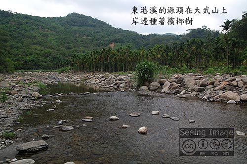 發源於南大武山的東港溪,匯集了多條溪水之後,成為屏東平原流域最廣的一條大溪,他的主流為來自瑪家鄉的「牛角灣溪」,先匯集「萬安溪」之後,又在萬巒的泗溝村匯集了「佳平溪」,之後才稱為東港溪。東港溪流到了竹田東南側,陸續成為與萬巒、潮州之間的界線,並與龍頸溪、隘寮溪衍生出許多密密麻麻的細流與湖沼,讓早期的竹田鄉具有良好的水利條件,灌溉、運輸全靠他們,才有達達港和頓物港的誕生。(見相關貼文「竹田客庄~已遠的頓物庄與達達港,http://blog.udn.com/seeingimage/2341916」)