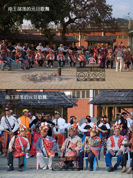 路上正好看到一群老人家著盛裝走在部落裡,我知道那是元旦上午的「除喪祭」正在進行中,放下行李便趕緊跟了過去。今年喪家多達20多戶,他們一早就出門除喪了,一直到了下午一點多才走完,平均一戶只停留10分鐘,幾乎是祭歌一唱完就立刻起身道別,不像13年前我所看到的,他們還有時間留下來吃吃東西、聊聊天。過去在卑南族的傳統社會中,家中有親人過世的喪家通常會被視為「不祥、不潔」,一些祭典、活動,他們都是不能參加的,一直要到了元旦上午的「除喪祭」之後,才正式解除厄運。在祭歌進行中,喪家婦女會在一旁掩面哭泣,但是這好像有點像漢人的「孝女哭墓」,一切只是儀式罷了!