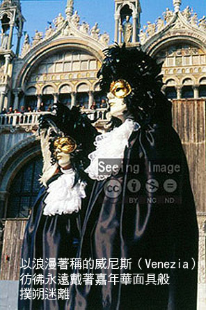 迷幻般的水城--威尼斯,人住在這裡,一切也似乎顯得很迷幻、很不尋常,彷彿這裡的人天天過著嘉年華慶典般的日子,人人帶著一副面具,讓人弄不清面具底下的真實。