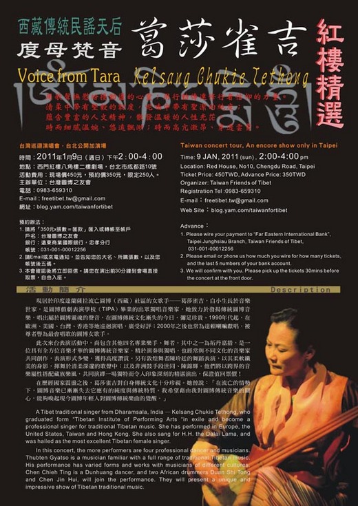【台北演唱會時間為2011年1月9日,詳情請見:「台灣圖博之友會」網站】