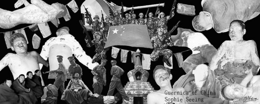 【上圖為另一件平面作品:中國的格爾尼卡】