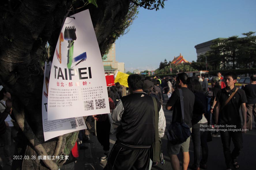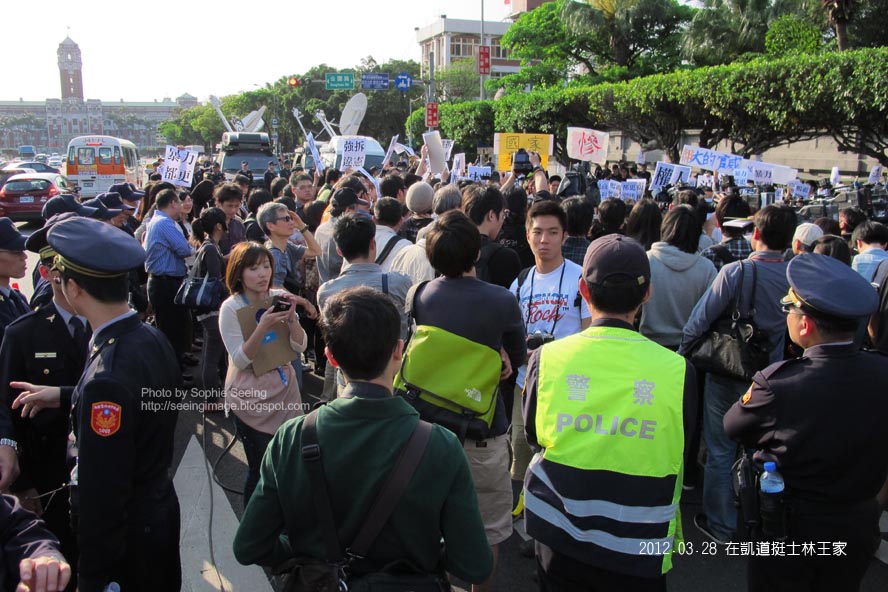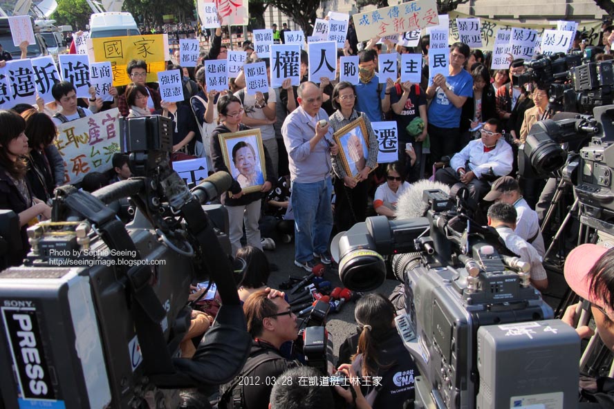 離開王家現場又到了凱道府前,因為這裡有一場記者會,會上有王家人對國家的控訴、有受害學生對警察蠻橫對待的描述、有律師對執法過當的譴責、有建築師對都市計畫的不滿、有教授對都更條例的撻伐、有社運人士對政府的霸道作風大聲疾呼人民覺醒......。對於早上的那一場風暴,大家都滿懷憤怒與悲愴。我也為此,好幾天擠不出一點笑容,一想到我所在的家園,人民連選擇自由居住、生活方式的基本權力都沒有,就不禁叫人悲痛!