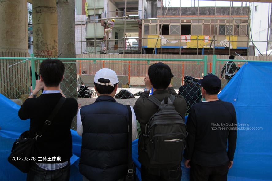傍晚從凱道又回到士林王家前,或許是怪手的開挖聲、或許是正值下班時間,此時圍牆外聚集許多附近住戶前來關心,原駐守在此的學生還沒回來,有其他人正在向他們說明情況,我也加入「解說隊」,此時才發現,原來附近住戶大多不知道發生什麼事,只知道跟「都更」有關。我費了很大的力氣去解釋梗概,終於讓他們了解,原來這不是「他家的事」,這是隨時都可能變成「自己的事」,如果大家對目前的法律依然沒有了解、對官商的掌控依然沒有警覺、對他人的遭遇依然沒有關心......。最後,大夥都抱著心有戚戚焉悵然離去。