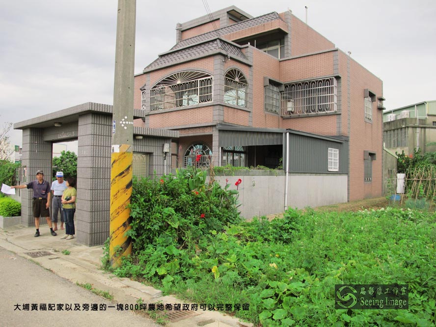 稻田也曾被怪手入侵的黃福記,已經高齡80歲,那塊位在大埔24米「公義路」旁的800多坪農地是祖先留下來的,緊鄰住家已經兩百多年。在「劃地還農」之後,政府卻將他原本完整的田地一分為三,一塊是緊鄰新馬路的畸零地、一塊是移到住家另外一邊的300多坪三角形地、一塊則是遠在2、3公里外的300多坪土地,而且新農地還留無水路,也被填入一些來路不明的廢磚黑土,根本無法耕作;而他的房子也要被削去前庭和門樓,就為了縣政府所說的「區塊方正」。
