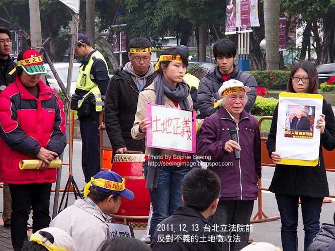 「今天政府這樣搶我的土地,叫我們農民怎麼生活?!」去年(2011)12月,一群來自全台各地的土地徵收受害者與聲援者,聚集在立法院大門前,一位來自八里的老農民--汪菊,泣訴著政府對她與百歲母親的凌虐。此時台北的冷峻空氣刺透了每個人的心,而暖呼呼的院廳內卻在半夜通過一條條「土地徵收條例」的搶奪民產法案,為已經開打的土地徵收戰助長了更猛烈的野火。