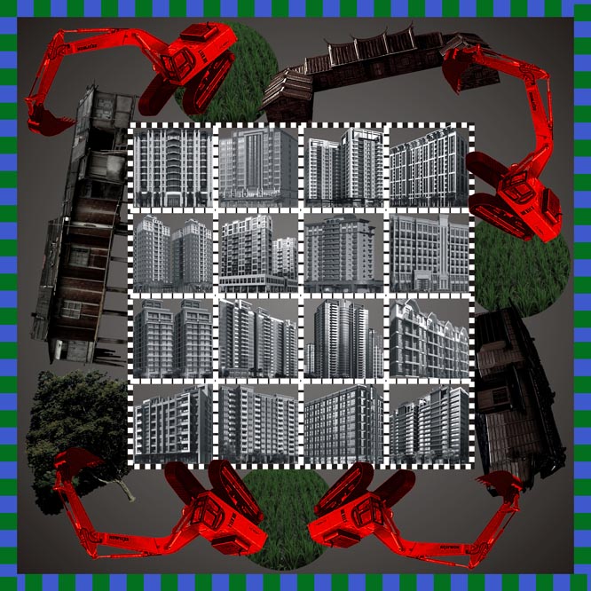 住在淡水的施云不但是文字、影像工作者,同時也是紀錄片導演,因為看到近年來政府開發新市鎮的過程中,許多不公不義的狀況,因此才以「新市鎮。後現代場域」為題,創作一系列作品,藉由這樣的藝術創作,來換醒社會大眾,對社會議題的重視。