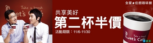 2009/11/06~11/30 全家伯朗咖啡館,第二杯半價