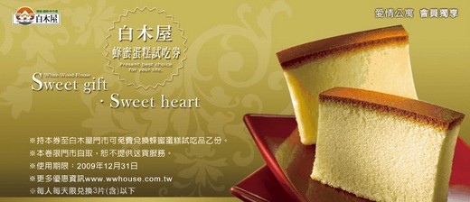 即日起至 2009/12/31止~ 白木屋 蛋糕 試吃券