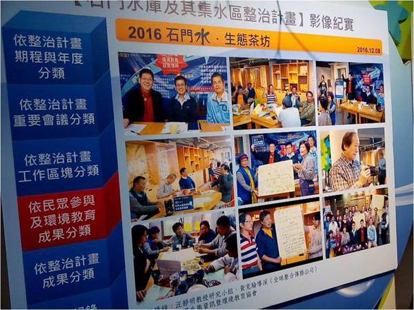 2017/05/05這天,水利署北區水資源局在石門水庫舉辦一場「水‧生態公民茶坊」,委託師大環境教育研究所汪靜明老師團隊「中華生態資訊暨環境教育協會」協助策劃辦理。這次工作坊跟有個出版任務相關,2006年初通過的《石門水庫及其集水區特別治理條例》至今已超過十年(請閱本文末延伸閱讀),水利署北區水資源局準備為此作出版,因此安排一系列座談會,今天這場的討論主題有三個:
