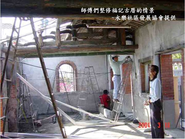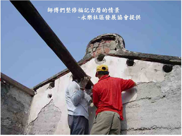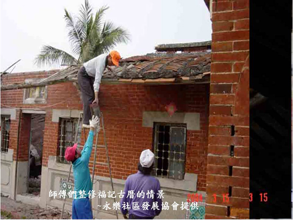 2001年底號召成立這個協會的關鍵人士是蔡玉心先生,他目前也擔任永樂村村長;聽說當年剛成立社區發展協會時,沒有固定的辦公場所,每回開會都要為會議地點而操心。沒想到社區「福記古厝」的子弟─佳冬農校退休老師的鄭世昌先生主動來找他們,表示願意無償提供老厝給社區發展協會當辦公場所。這個好消息很提振軍心,但是福記古厝閒置多年,毀損嚴重,有千千萬萬的紅螞蟻入侵!巧合的是,彰化縣埔鹽鄉也有個永樂社區,而他們有個古厝活動中心;蔡理事長帶著志工參觀了埔鹽鄉的永樂社區之後,大家受到很大的啟發和鼓舞,特別幸運的是,在志工群中找到具有修復古厝技術的老師傅,花了非常多的功夫,慢慢讓福記古厝重現典雅的風貌,也讓協會擁有全台最令人羨慕的辦公空間!