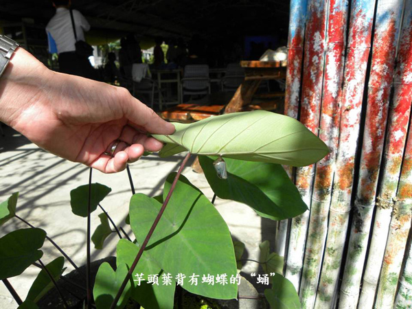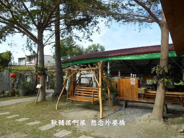 在古厝─榮陽堂的後方原本是養鷄場,在老房子提供給社區使用之後,停止了養雞;2005年海棠颱風,大雨沖下許多漂流木到海邊,在公部門開放撿拾作業之後,志工們撿回許多漂流木、加上舊家俱回收計畫的推動等,他們加以整修再造成各種實用的製品,還把養雞場營造成舒適的聚會庭園。庭園周邊種植許多花木,特別是蝴蝶的食草和蜜源如馬利筋、華它卡藤以及馬兜鈴,、、;接著仔細觀察種植之後的狀況,發現蝴蝶自動飛來了,而且隨著種植物種的增加,蝴蝶種類也越來越多,這讓他們深深領悟到棲地、食物的重要性,良好的環境才是福地洞天。在鳥飛蝶舞的庭園中,擺放了幾架漂流木做成的鞦韆,讓人們坐著搖啊搖;如果很喜歡的話,可以買回家,坐在鞦韆上看書談天、想念外婆橋。