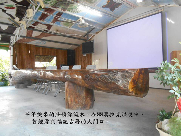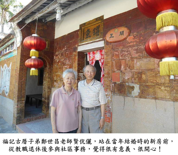 最近又前往福記古厝的時候,遇見鄭家子弟─佳冬農校退休的鄭世昌老師賢伉儷,他們站在當年結婚時的新房前,很開心地告訴我們:有這麼多人來照顧他們的老房子,有這麼多人來這裏學習,是他們家的榮幸;他還跟我們提及:88洪災帶來的泥漿與廳堂一尊神祉等高,十分驚人。