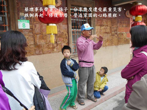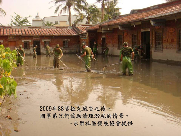 2009年88莫拉克風災,對南台灣造成重大創傷,位在林邊溪下游的永樂社區也都泡在水中。那次災害讓村民頓失所有,也把他們苦心修復、經營有成的福記古厝遭到泥沙掩埋,高度有一百多公分。當外界來到當地救災時,對地方的人事物都非常陌生,極度影響救災效能。這種慘痛的經歷,讓他們在災後用心學習政府部門推動的「社區自主防災」,蔡玉心理事長更因為身歷其境所累積的心得,成為很優質的講師。