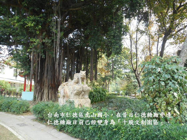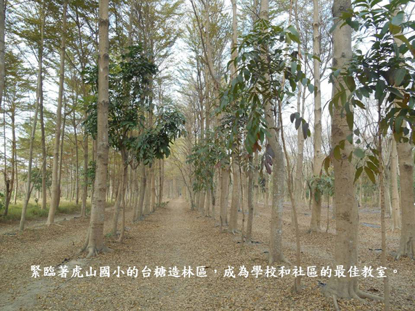 今年春天有個機會前往台南市仁德區的虎山國小,這裡離高鐵台南站─歸仁不遠,1917年創校,學校旁從前有仁德糖廠;糖廠目前變身為十股文化創意園區,鄰近有近百公頃的台糖地則成為平地造林區,更成為虎山國小師生探索環境的重要基地。