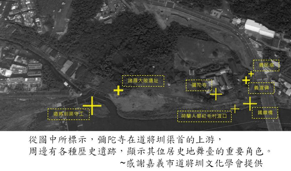 大約40年前,我第一次前往嘉義市彌陀寺,到那裏走吊橋,這座吊橋跨越的是八掌溪,溪北是嘉義市,溪南是台南市。在那個年紀,不懂得本地歷史地理的豐富內涵;近年來的因緣際會,得知了三百多年的古老道將圳渠首,就在彌陀寺下游一點點的地方,而在彌陀寺大雄寶殿後方數十公尺處,嘉義市政府正準備興建「嘉義市流浪動物收容中心」。