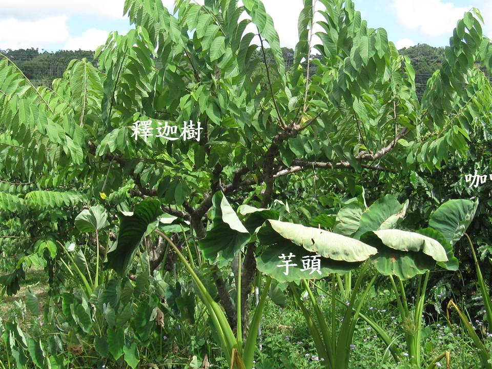 在累積了多年經驗之後,潘先生在他的園圃裏,採取「分層種植」的方式,從圖片中可以看出,在台東有名的釋迦樹下,還種了只需要半日照的咖啡樹;咖啡樹下有芋頭,芋頭底下有南瓜,有的南瓜旁甚至種了鳳梨。這樣營造出來的園圃,猶如一座森林。(更多資訊請閱http://www.scribd.com/doc/83139582/Taiwan-Watch-Magazine-V13N4 P.38~P.43)