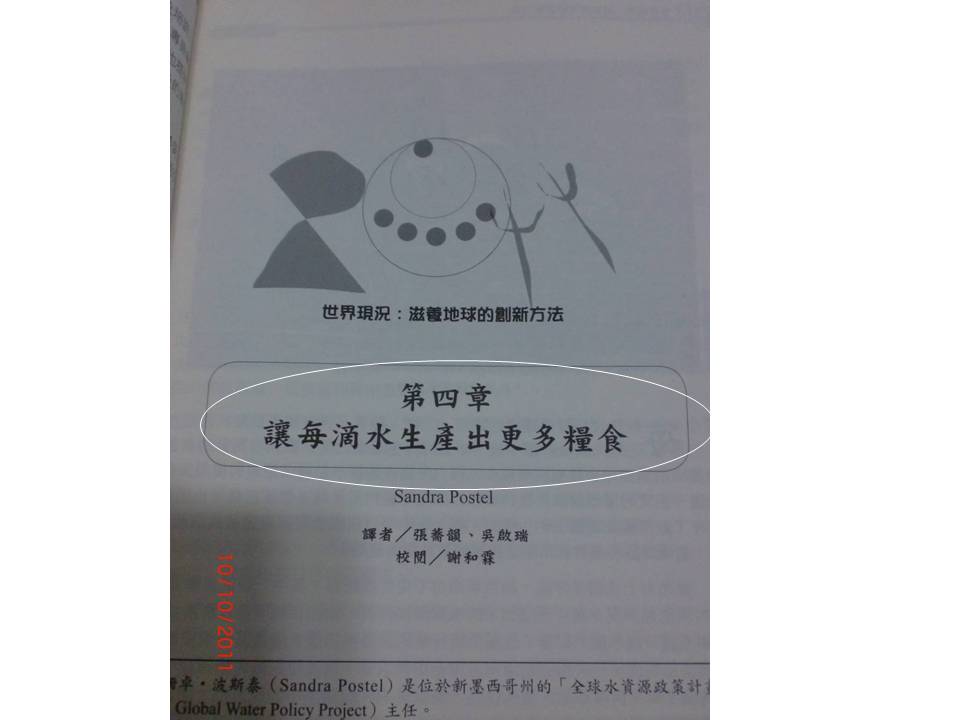 有一個在1974年成立於美國華盛頓特區,以獨立、非營利的環境研究組織 「看守世界研究中心Worldwatch Institute」,在長年對於急迫性的全球事件進行跨領域研究、每年都出版的《世界現況》,2011年的主題是《Innovation that Nourish the Planet》(中文譯為《2011世界現況~滋養地球的創新方法》),書中對於全球面臨人口增加、氣候劇烈變遷之後的糧食匱乏風險的此刻,一些有心人士在地球的各個角落的農業耕耘,名之為「滋養地球」,聽起來真是溫暖極了!