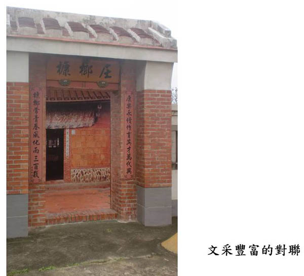 從門樓的對聯「槺榔長青春風化雨三百載 康樂永續作育英才萬代興」,可以看出經營者對未來充滿期待。然而從這個入口意象也讓我不斷地深思,並且聯想到台北市的華光社區以及許許多多面臨都市更新的社區,更新的作為,如果讓空間地景全部改觀,那麼,我們對往昔的認知和記憶,是否全部都只有在文物陳列館或入口意象中追尋?