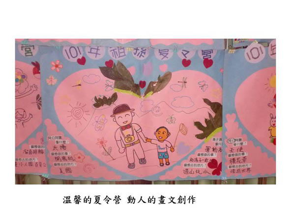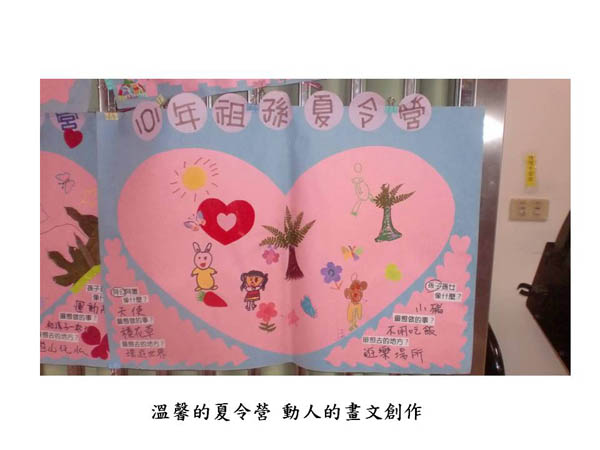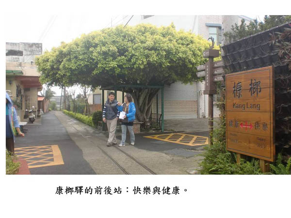 2011年,「槺榔驛」落成了;它的前後站分別是快樂與健康,看了讓人充滿幸福的感覺!最幸福滿盈的,莫過於參與祖孫夏令營的老老少少了;從他們動人的畫文創作中,有的認為阿公像牛、像太陽、像天使、、;而阿公們認為孫子像老鼠、像小豬,真是動人極了。