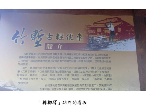 大概在七年前,我們到這裡來拜訪里長的時候,聽到他說,村子西邊就是從前的「竹塹港」,從竹塹港上岸的貨物要運往城內的路徑,會經過康樂里;日治時期興建了「輕便車」,軌道就在他們家後方,他好希望可以重塑早年的情景。