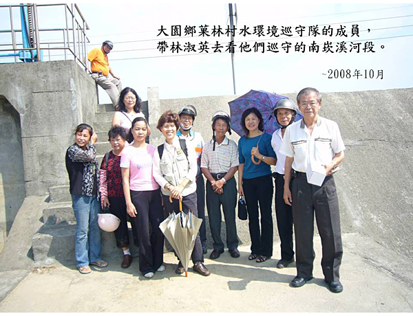 即將於2014年升格為台灣第六都的桃園,在2012年底人口數達203萬人,列管營建工地有8,100多處、工廠登記1萬712家、機動車輛成長突破182萬多輛,環境負荷相對沈重。南崁溪是桃園縣境內重要的水系之一,溪流兩岸的居民高達80萬人,超過桃園縣民總數的1/3;2008年的盛暑,菓林村的幾位大哥大姐邀我前往他們巡守的南崁溪河段,主要是想讓我知道有個乾涸的舊水道,很希望可以引南崁溪水重新去滋潤它?在廣興里號召大群志工、跨里認養公園的的溫秀英里長、巡守大堀溪並積極投入【觀新藻礁保育】的潘忠政老師、新楊平社區大學成立的黑皮鐵馬隊等,都是令人非常欽佩的人士和社團。