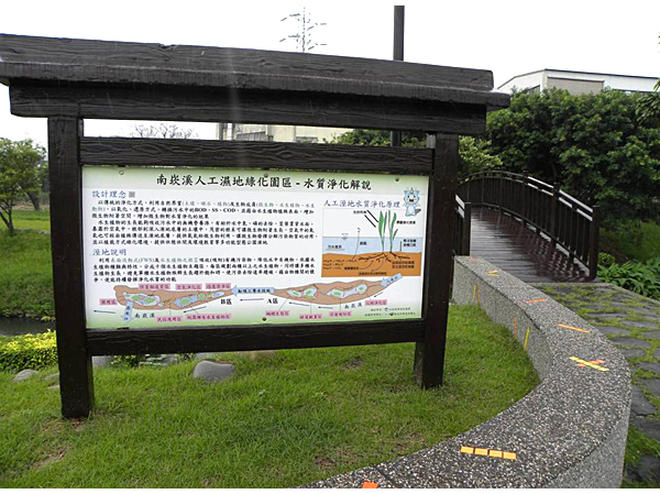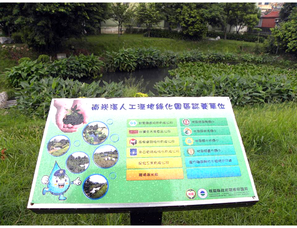 南崁溪人工濕地綠化園區去年6月11日遭水災,造成多處嚴重毀損,是縣府努力重建並加強周圍環境綠美化而來的,所以錦興社區跟其他幾家企業及四所國民小學,一起認養園區。根據簡易的水質檢測,從引入口到最後一池的樣本,最明顯的差別是在濁度,經由溼地的淨化,水變清淨多了。而從實驗室的檢測,則可以看見原水汙染物質的降低。