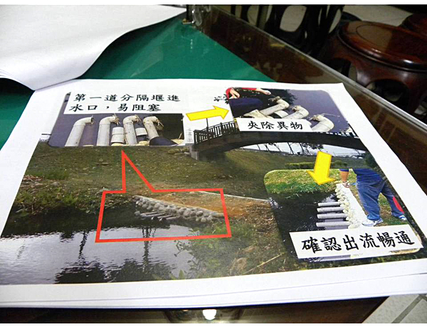 五、 記錄出入水口高度、去除攔汙設施之堵塞物品。