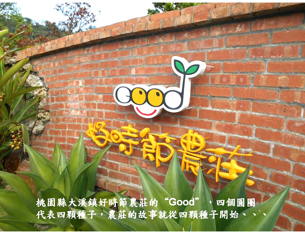 座落在桃園縣大溪鎮的好時節農莊,離大溪老街約五公里,居慈湖風景區、石門水庫風景區和北部橫貫公路風景區的交通要衝。農莊門口的識別標誌(Logo)讓人印象深刻,而這裏的故事就是從 “Good”的四個圓圈圈開始。