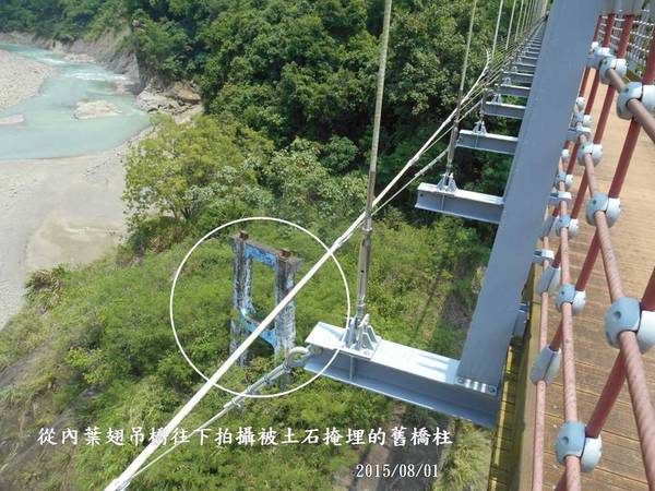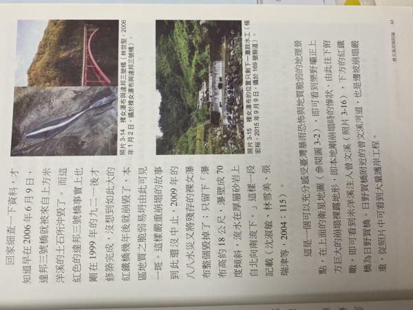 *P.63讓我想起2015/08/01從內葉翅吊橋往下拍攝被土石掩埋的舊橋柱。