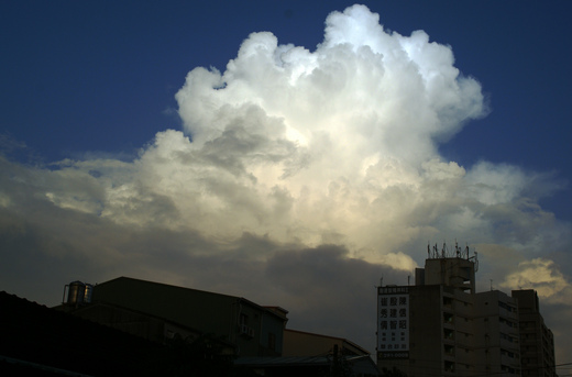 雲擺弄著姿態 躍過屋頂....