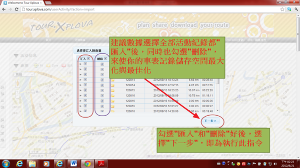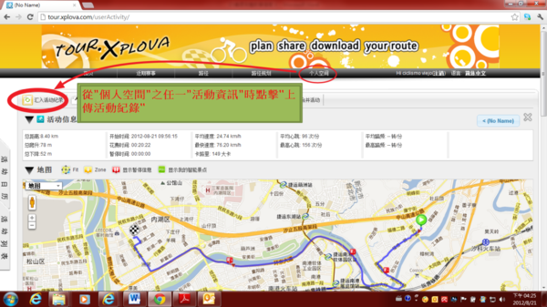 4.3.6) 匯入活動紀錄到你的tour.xplova.com雲端帳號內